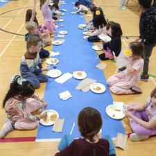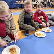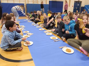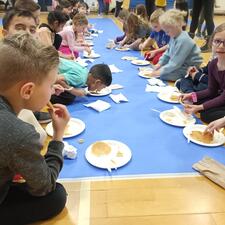 We rounded out our Carnaval celebration week with a pancake breakfast for all staff and students! 1000 pancakes were served in less than 45 minutes. The pancakes were enjoyed in the gym while listening to French Canadian music. Thank you to all our lovely volunteers, these events could not happen without you!