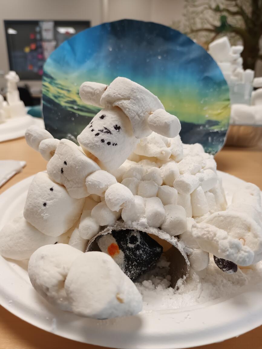 We've had a few busy days celebrating French Carnaval. So far the students have enjoyed the Maple Man, French plays, searching for Bonhomme around the school, making ice sculptures for a contest and creating a beautiful mural for the foyer. Next up is our pancakes with Bonhomme and Sunny!
