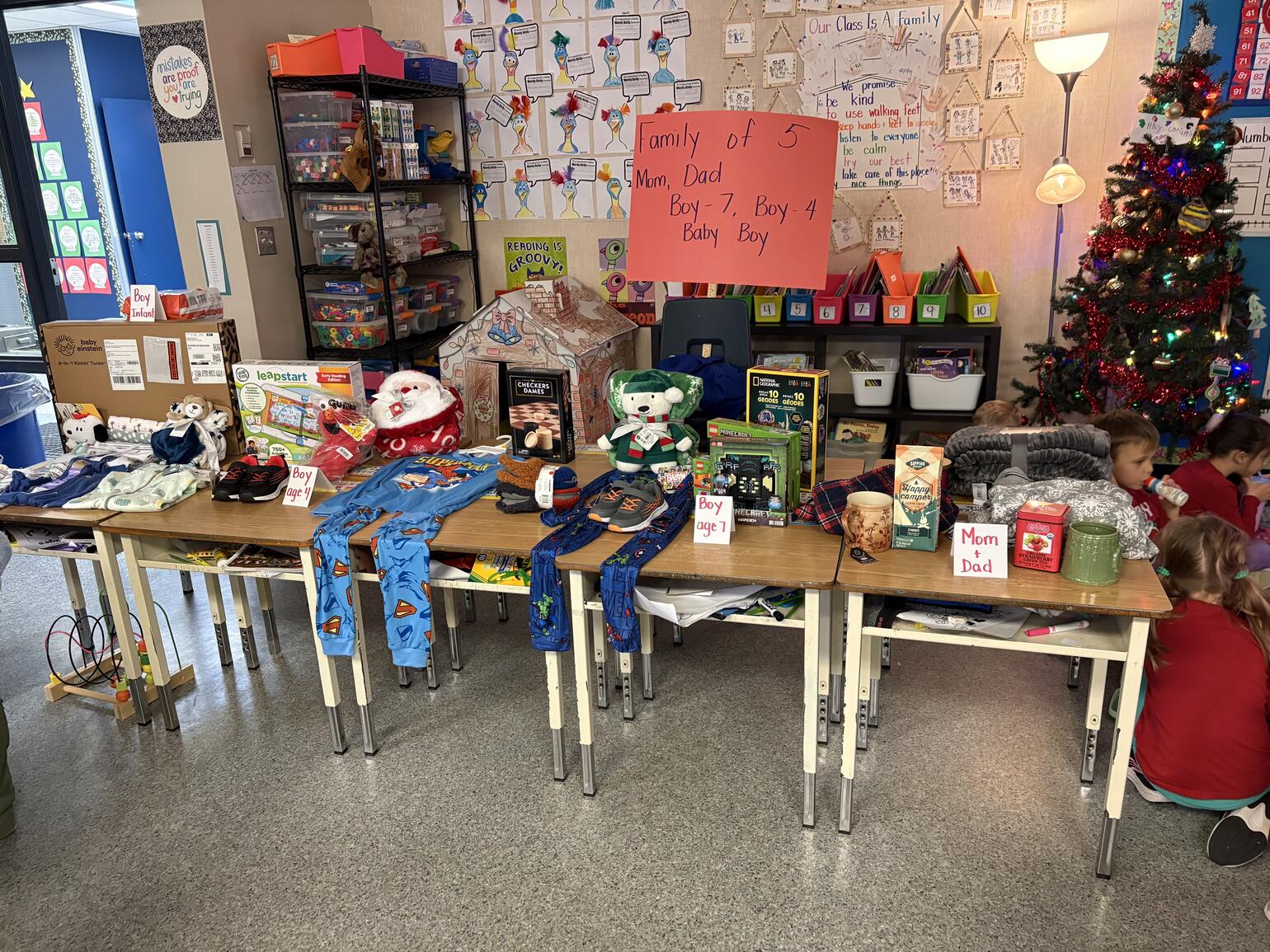 Thanks to everyone's efforts and generosity, our school is supporting three families this year:
