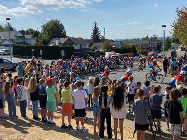 On Thursday September 22nd Cops for Cancer - Tour de Valley visited Sandy Hill Elementary. The entire school lined up at the front of the school to provide a warm welcome.