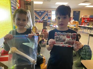 Two Students Holding Up Their Culture Show and Tell Items