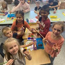 Mrs. Adi's class, along with their buddies in Mrs. A. Hall's class are learning about Diwali, the festival of lights and new beginnings. Diwali will be celebrated on Monday, Oct. 24/22 this year. At school these buddy classes decorated Diya's together, which are small clay lamps. Happy Diwali everyone!