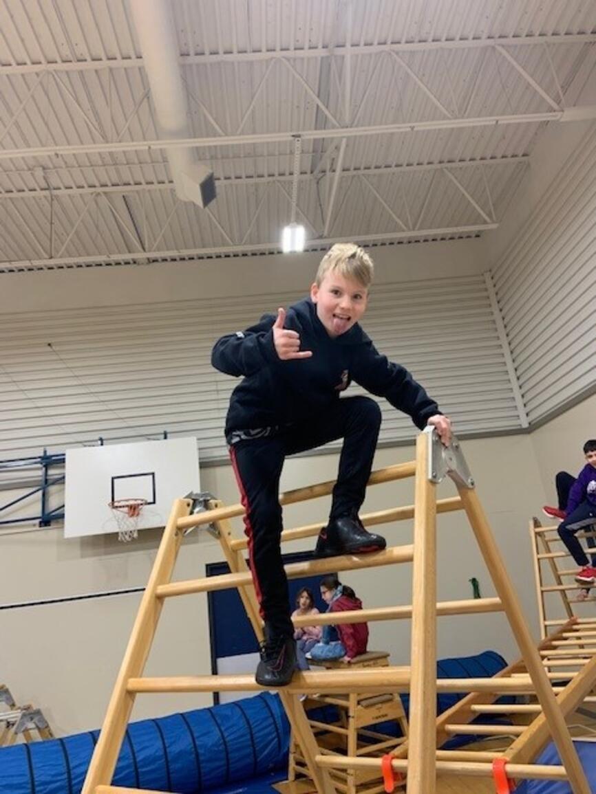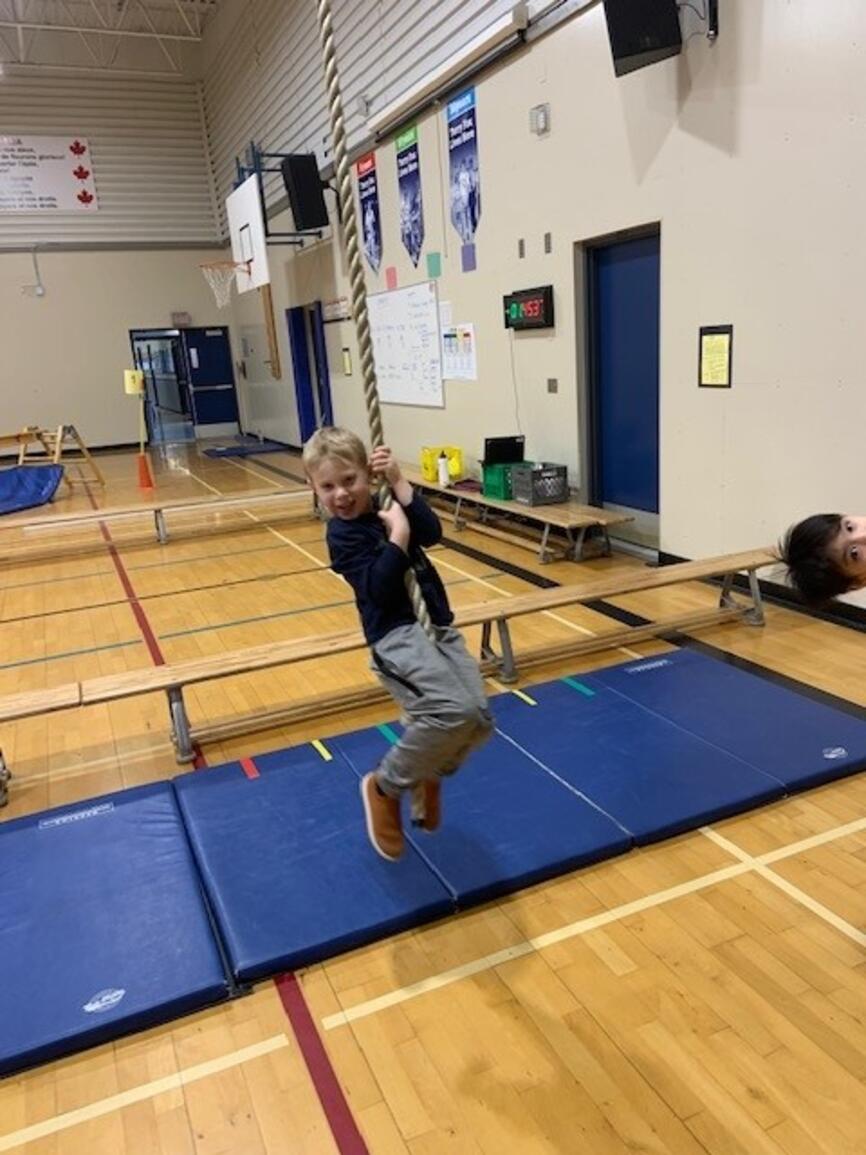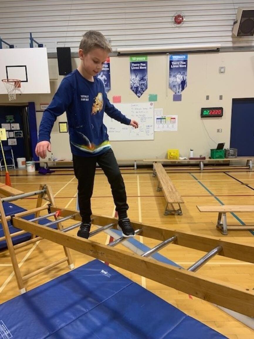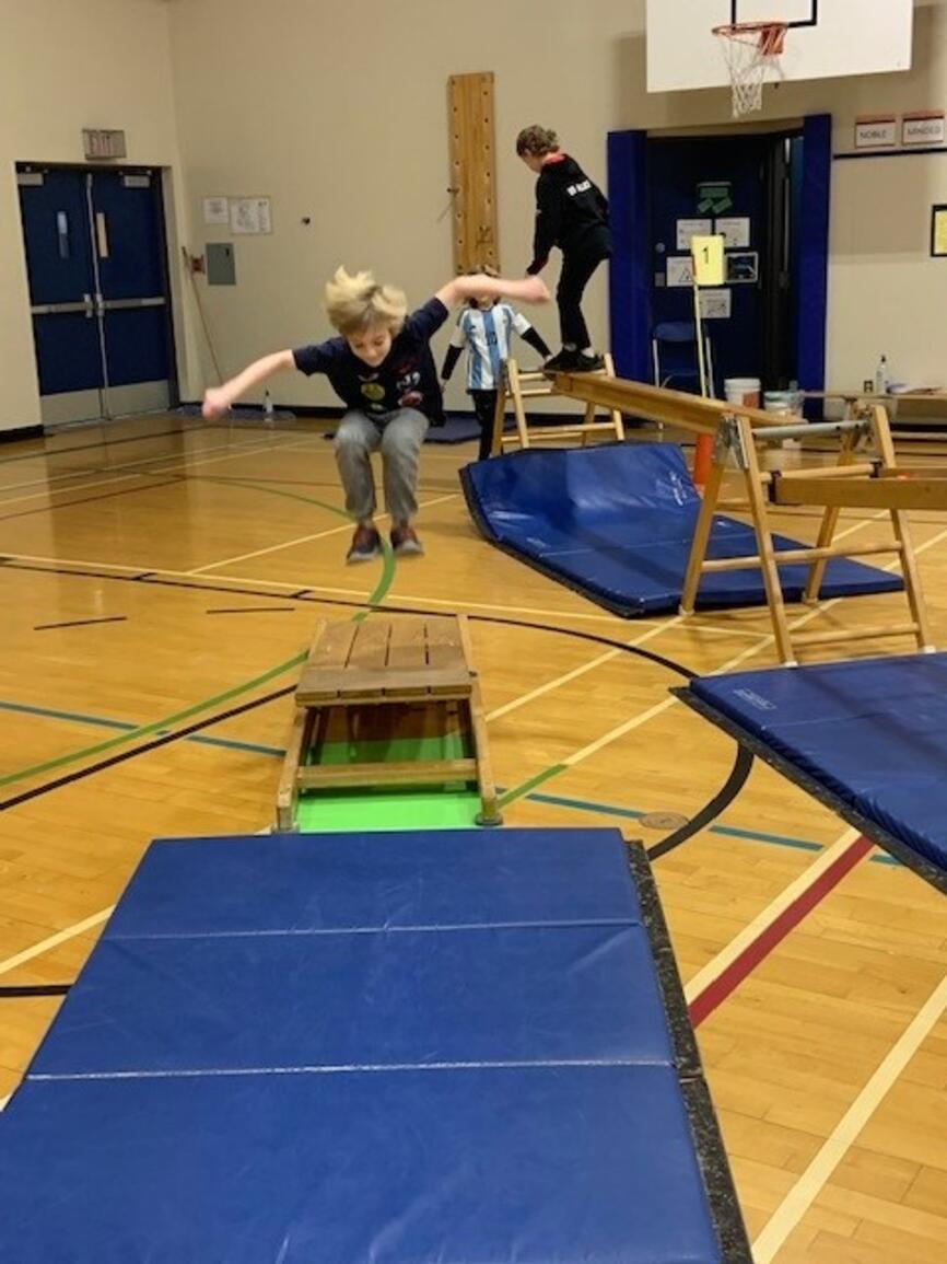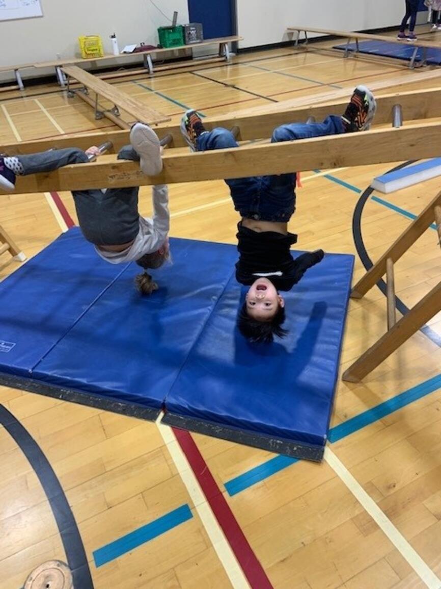 It's that time of year again! The jungle gym is up and students are building strength and skill on gymnastics equipment. Next week grades 3-5 participate in "Ninja School" which is based on parkour and set up as a record breaking activity. The challenge is to apply the jumping and landing skills to the playground so students avoid injury at play:)