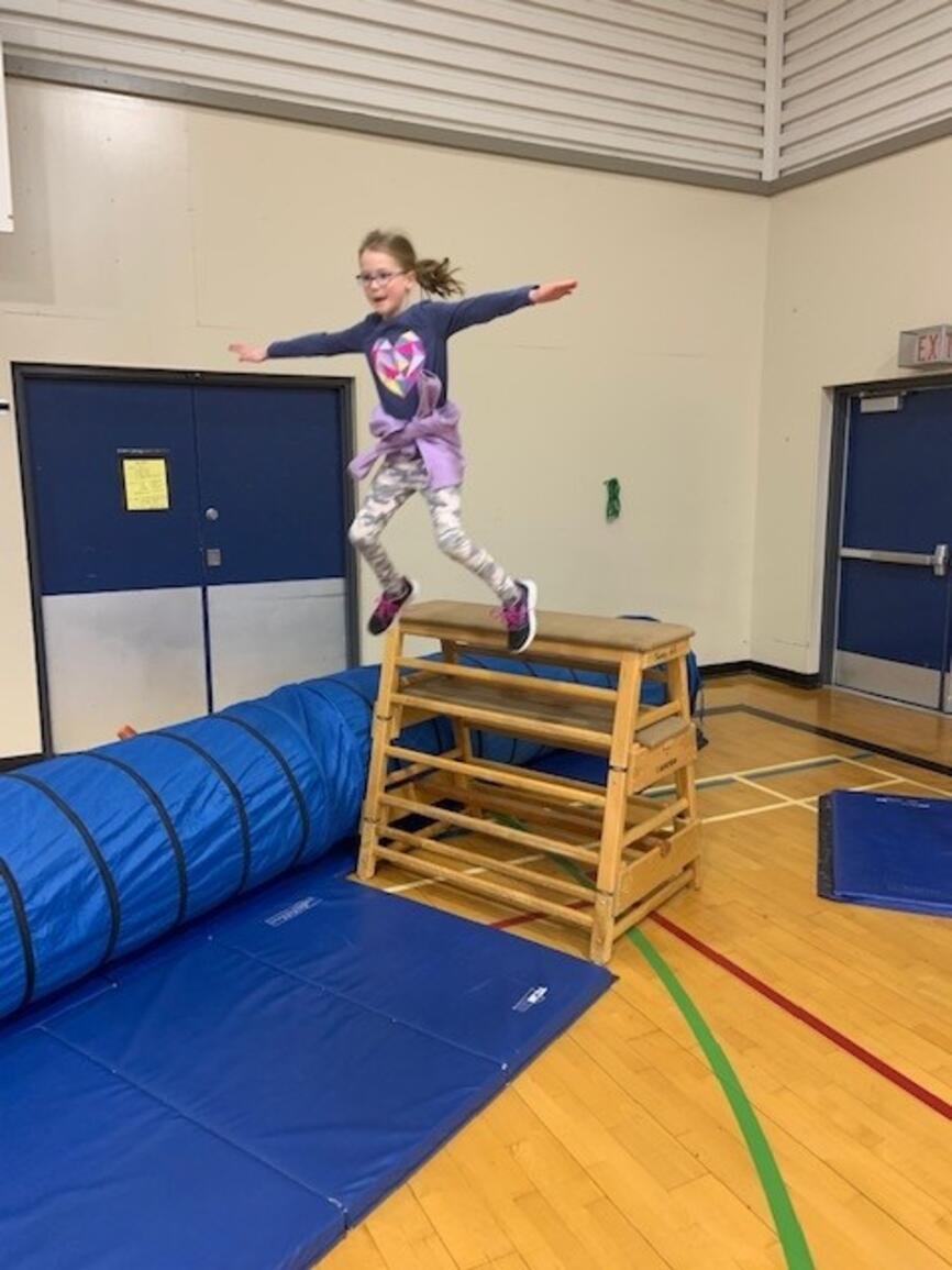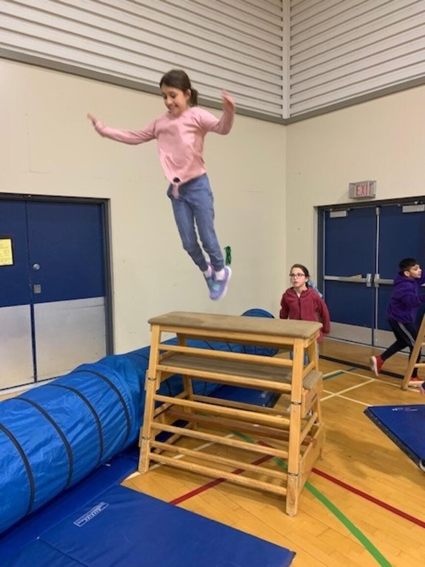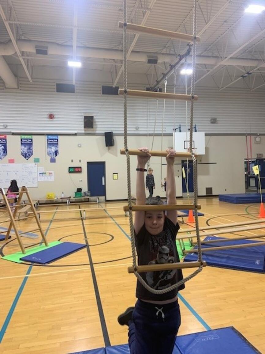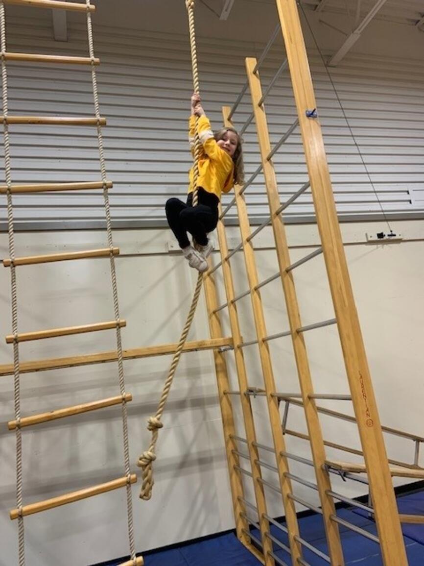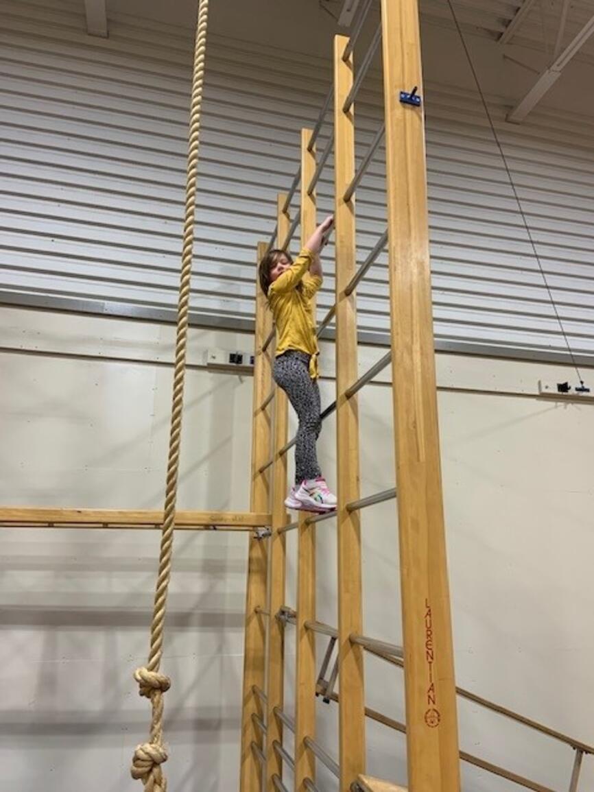 It's that time of year again! The jungle gym is up and students are building strength and skill on gymnastics equipment. Next week grades 3-5 participate in "Ninja School" which is based on parkour and set up as a record breaking activity. The challenge is to apply the jumping and landing skills to the playground so students avoid injury at play:)