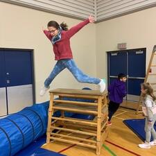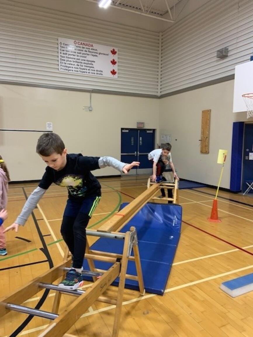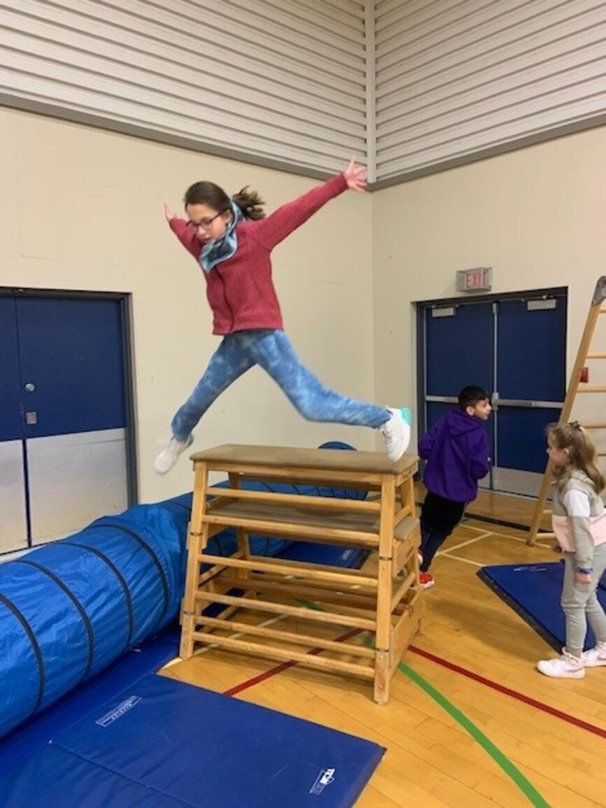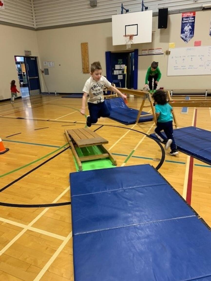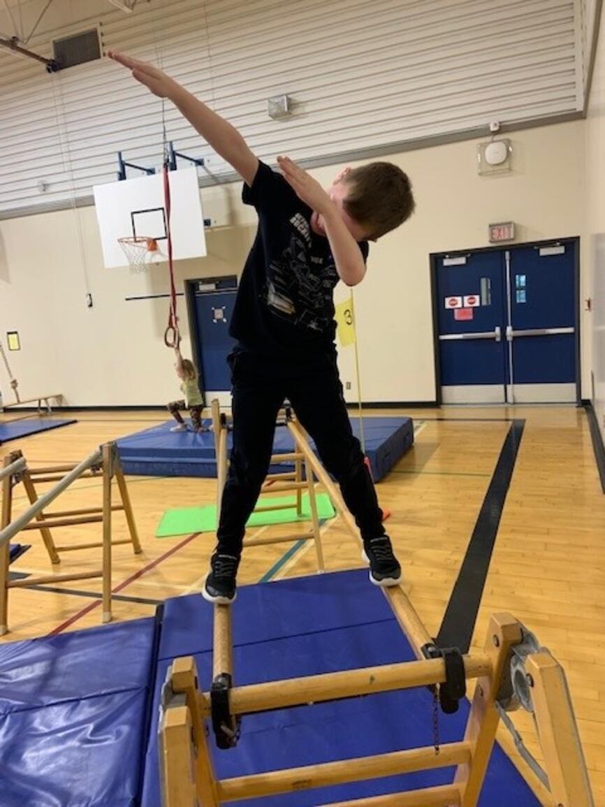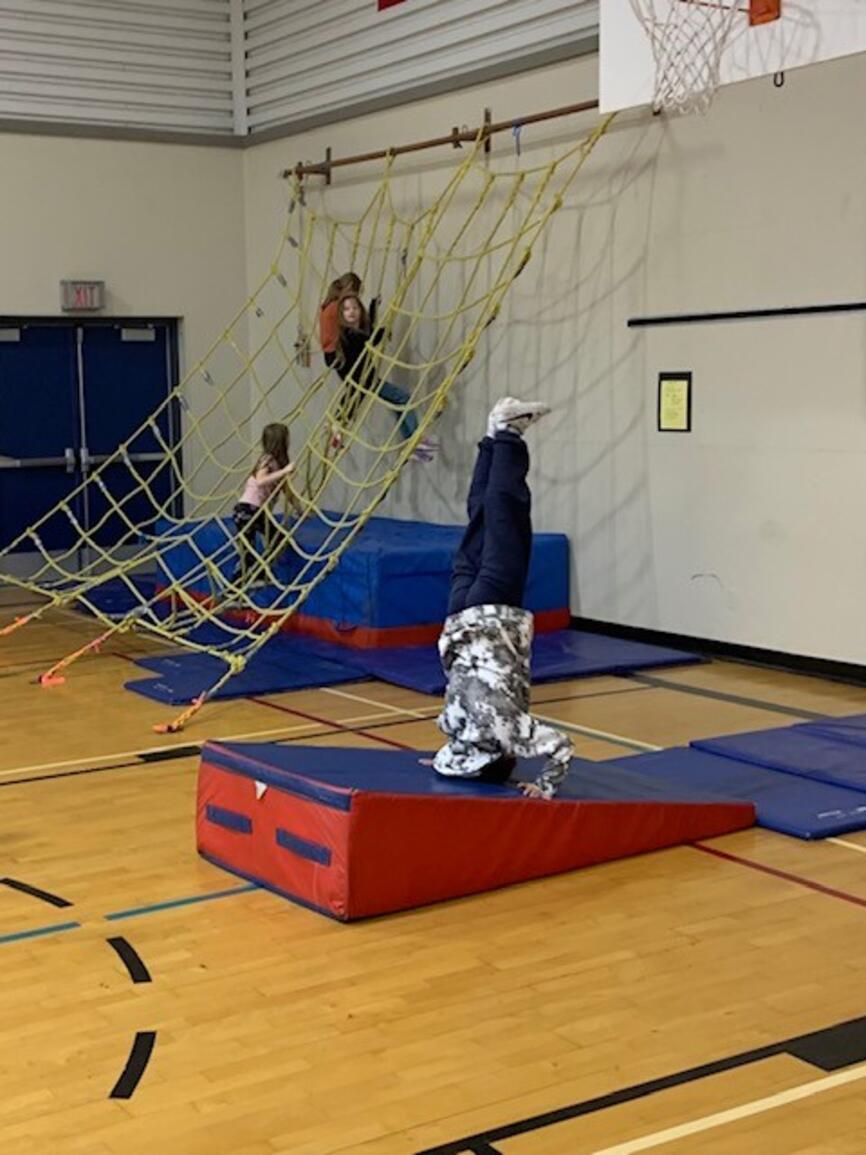 It's that time of year again! The jungle gym is up and students are building strength and skill on gymnastics equipment. Next week grades 3-5 participate in "Ninja School" which is based on parkour and set up as a record breaking activity. The challenge is to apply the jumping and landing skills to the playground so students avoid injury at play:)
