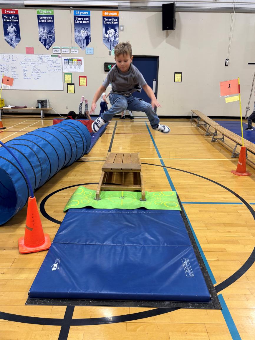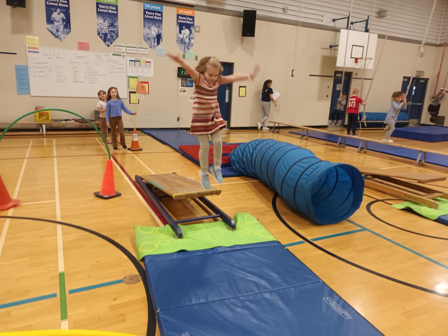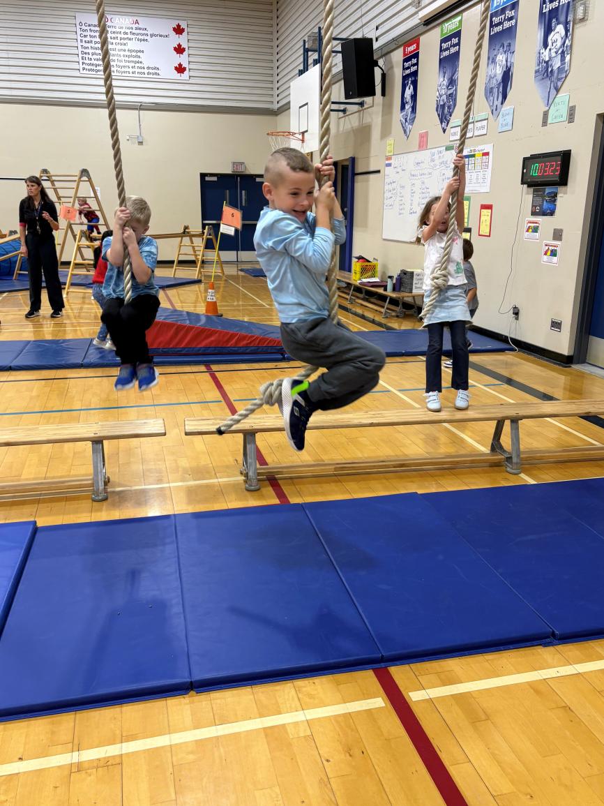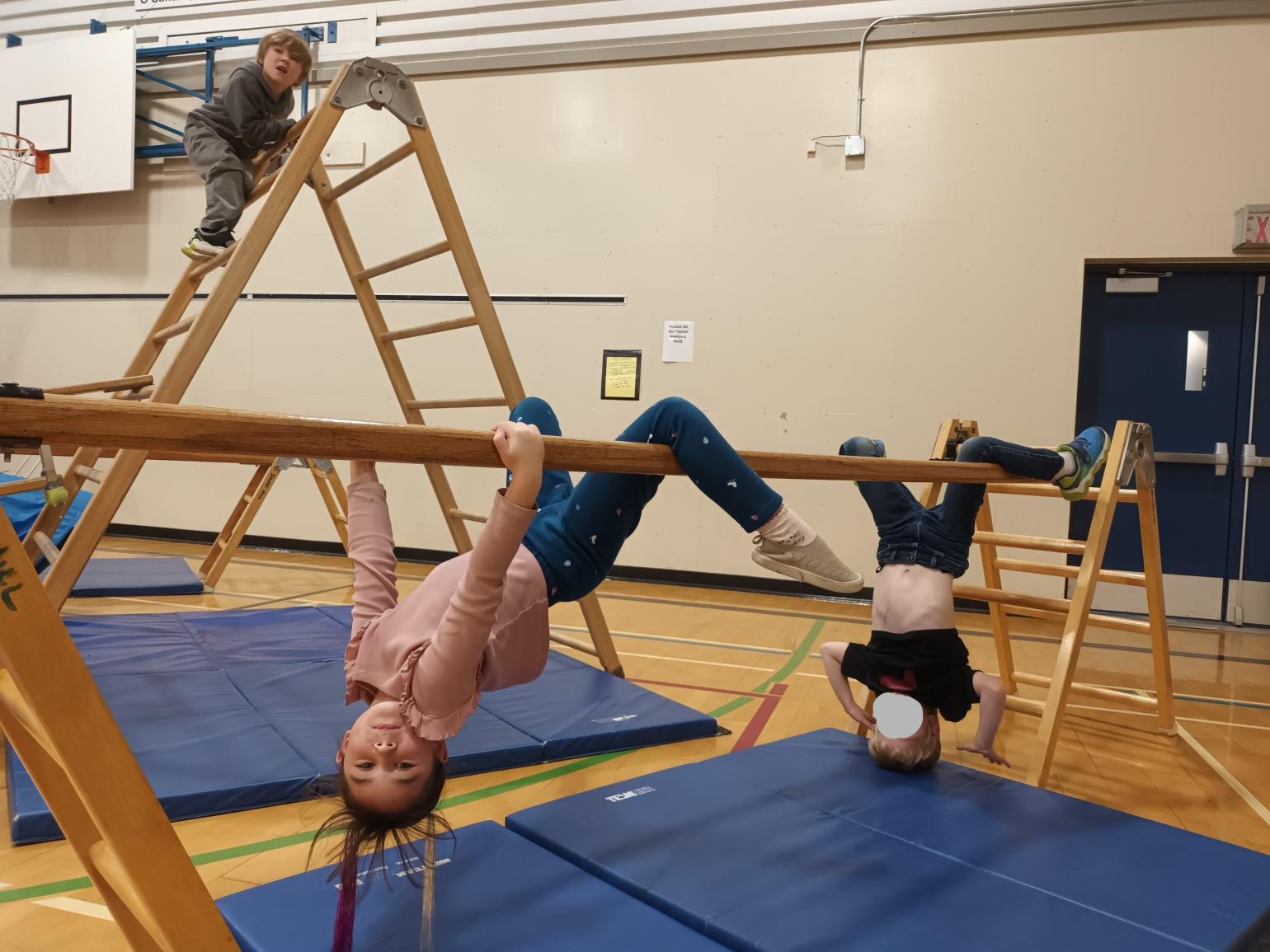 The jungle gym is up! You may have heard your kids chatting about it. We are starting with traditional gymnastics and making sure we jump, land, and roll well. All students have been challenged to get inverted while hanging on equipment. Some of them are showing their gymnastics skills that they have practiced in club/community gymnastics lessons. Next week the older students will participate in "Ninja School" which is based on parkour. The challenge is to apply the jumping and landing skills to the playground so students avoid injury at play.