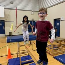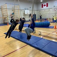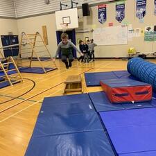 Sandy Hill students are in "The Jungle" again during gym class. This week they are covering basic gymnastics and next week they start "ninja school." It seems fairly easy for them to self assess with a four out of four due to all the movement over and around the equipment. Fitness self assessment: