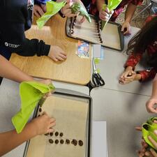 On Friday, November 15th, Chef Kevin from Les petits chefs in Vancouver, came to teach the students in Mme Newcombe's, Mme Tipton's, Mme St-Martin's and Mme Rodriguez' class how to make authentic French truffles! Students learned that chocolate truffles were named after the mushroom. They formed their chocolates, chilled them, then coated them in their choice of coating. We greatly enjoyed participating in the love of food in French culture!