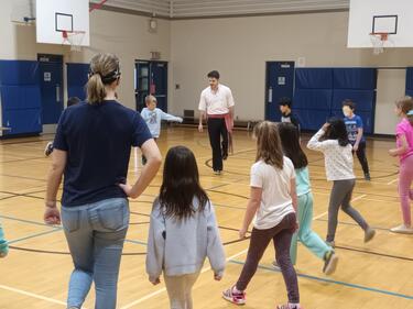 As part of our Carnaval week, Sandy Hill students were fortunate to have a guest presenter, Mr. Fergus, teaching an introduction to jigging to the entire school over two days. The dance is very popular among the Metis. Students had a blast and were extremely active. One class plopped down in exhaustion after completion of their first dance!