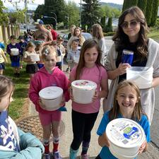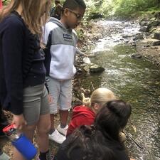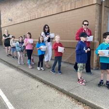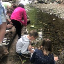 Division 18 and 4 walked to Stoney Creek to release the salmon fry that were given to the school as eyed-eggs in January through the Federal Fisheries and Oceans program Salmonids in the Classroom. Each salmon female lays about 3000 eggs. After growing and traveling through the Fraser River to the Pacific Ocean they will return to the same stream a few years later to lay their own eggs.