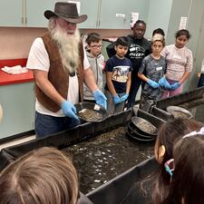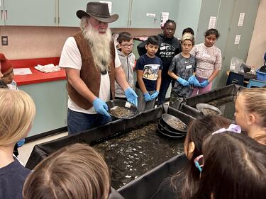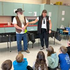 On Tuesday October 24th and Wednesday October 25th, Grade 5 students (and Grade 4's in Divisions 2 and 3) participated in a hands on presentation from Yukon Dan. Yukon Dan is a professional gold panner who taught the students how to pan for gold and separate minerals with magnets. He also brought with him his extensive collection of gold related items and treated students to engaging and educational interactive discussion about "gold fever" in British Columbia.